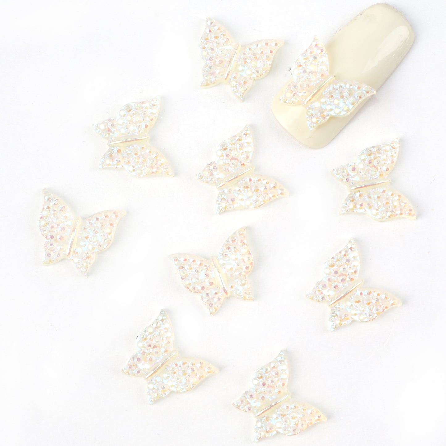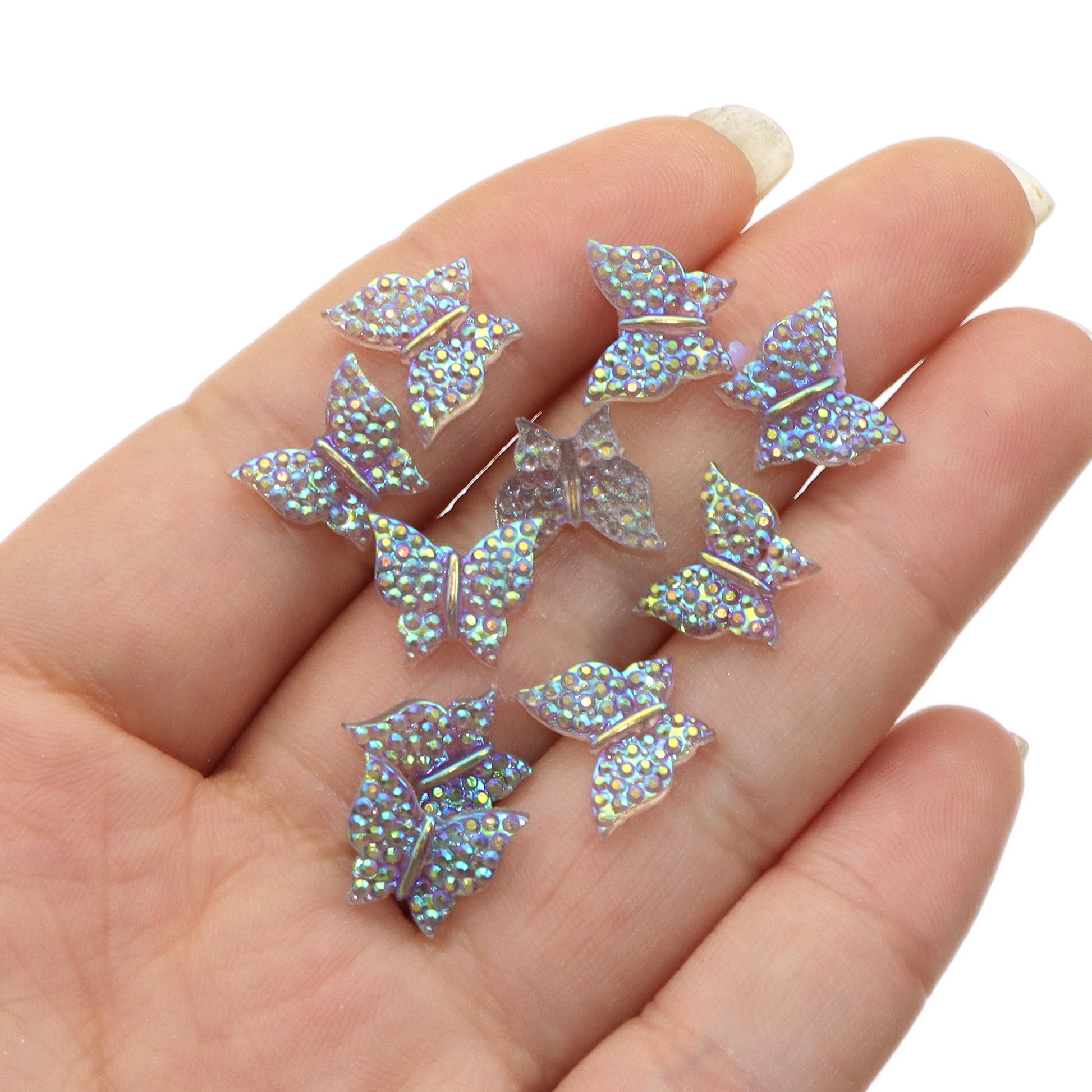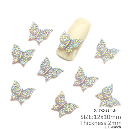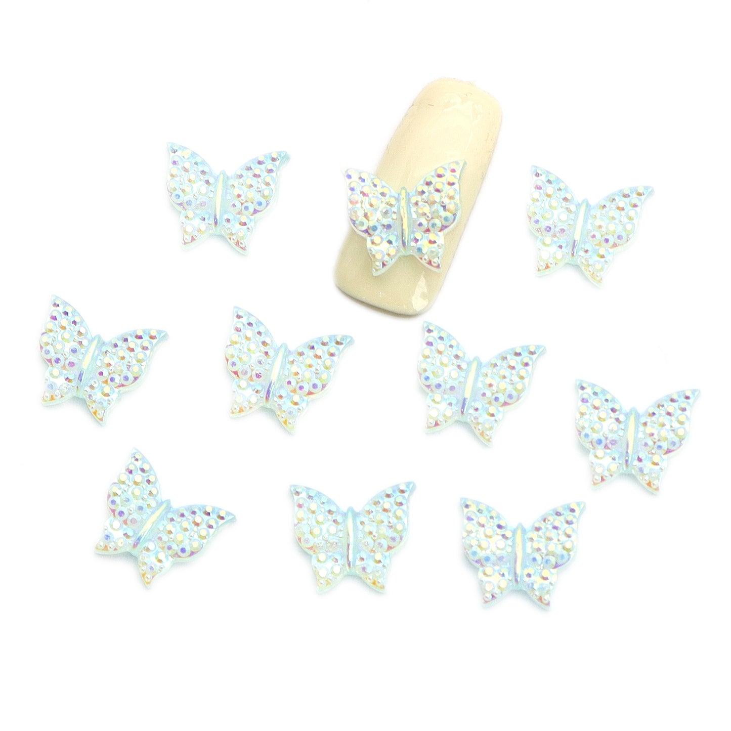 10pcs Plain Iridescent Butterfly Nail Charms - Transparent Acrylic Beads, Flatback Skeleton Cabochons for DIY Nail Art & Craft Decorations