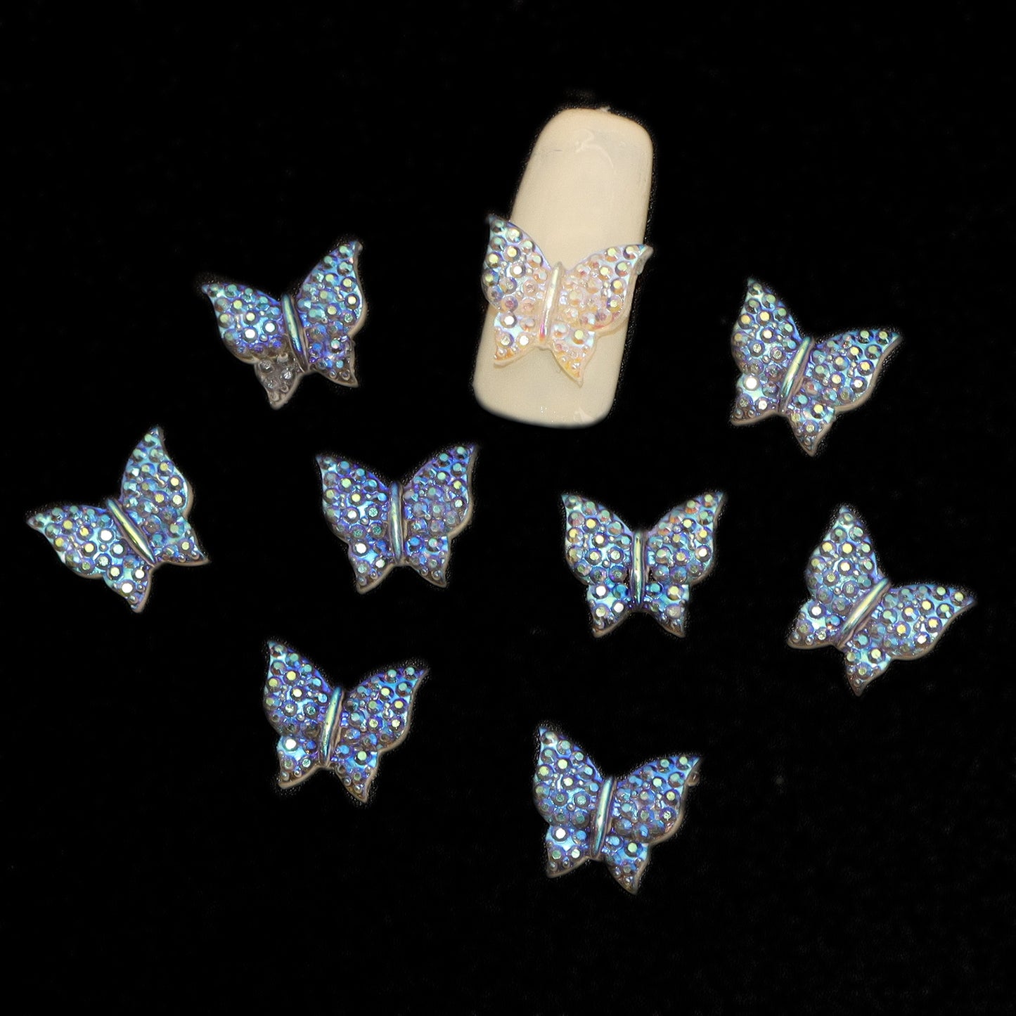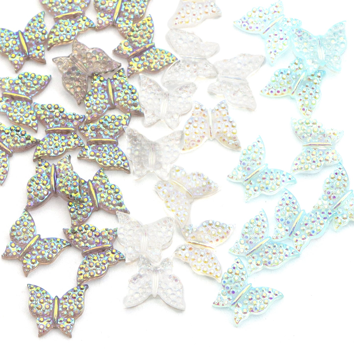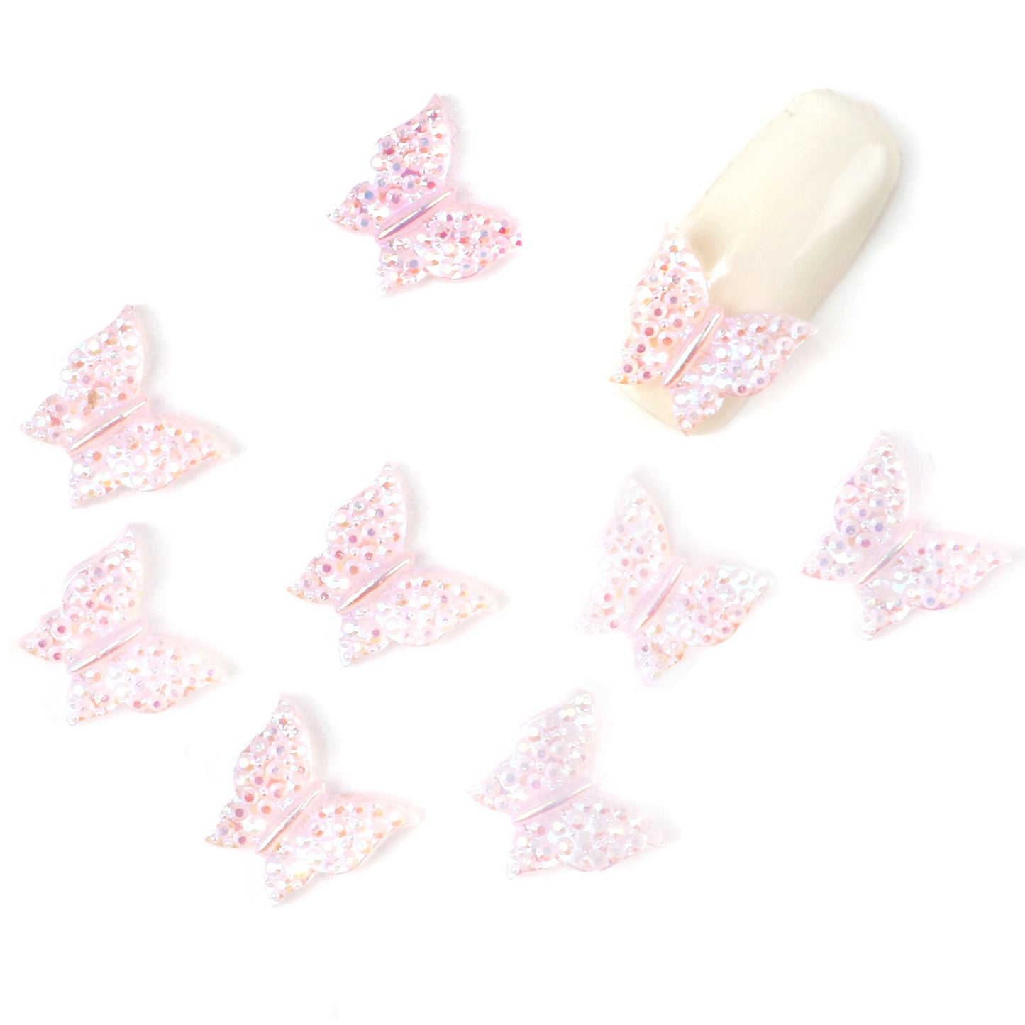 10pcs Plain Iridescent Butterfly Nail Charms - Transparent Acrylic Beads, Flatback Skeleton Cabochons for DIY Nail Art & Craft Decorations