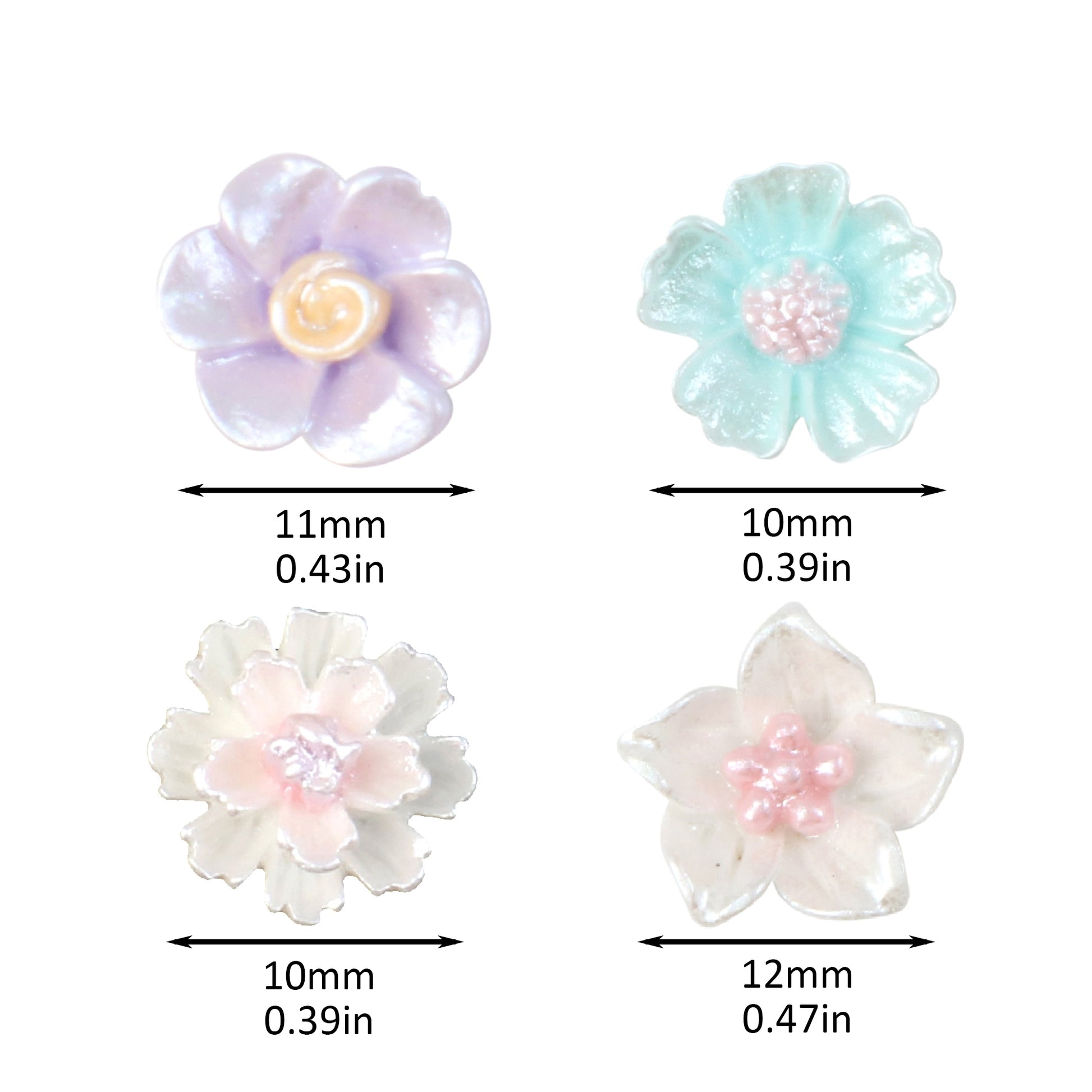10pcs Pearlescent Flower Shaped 3D Acrylic Resin Cabochon Charms Ornament DIY Creative Phone Shell Case Keychain Fridge Patches Decors Accessories