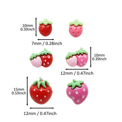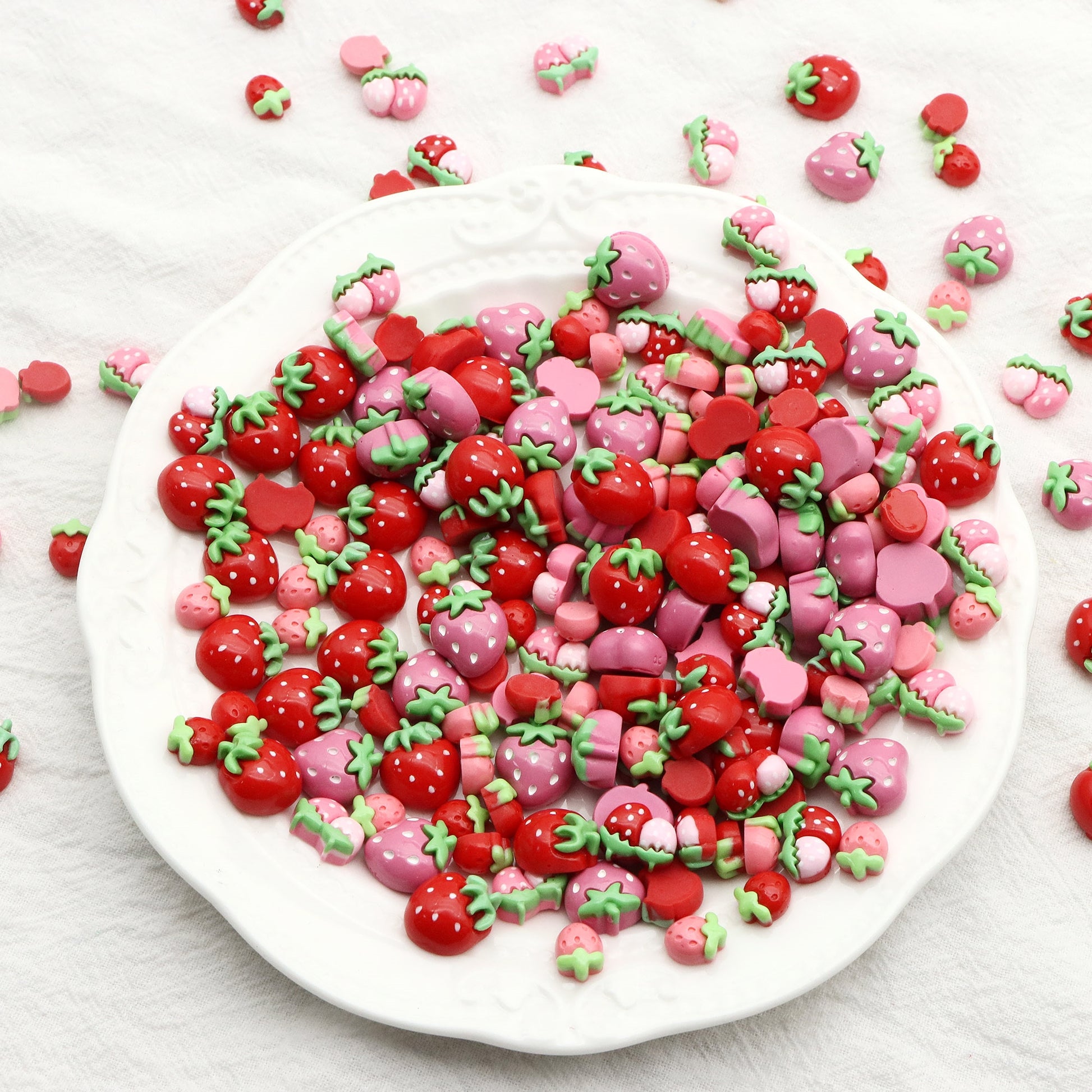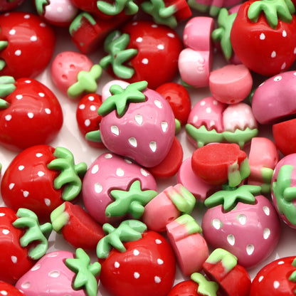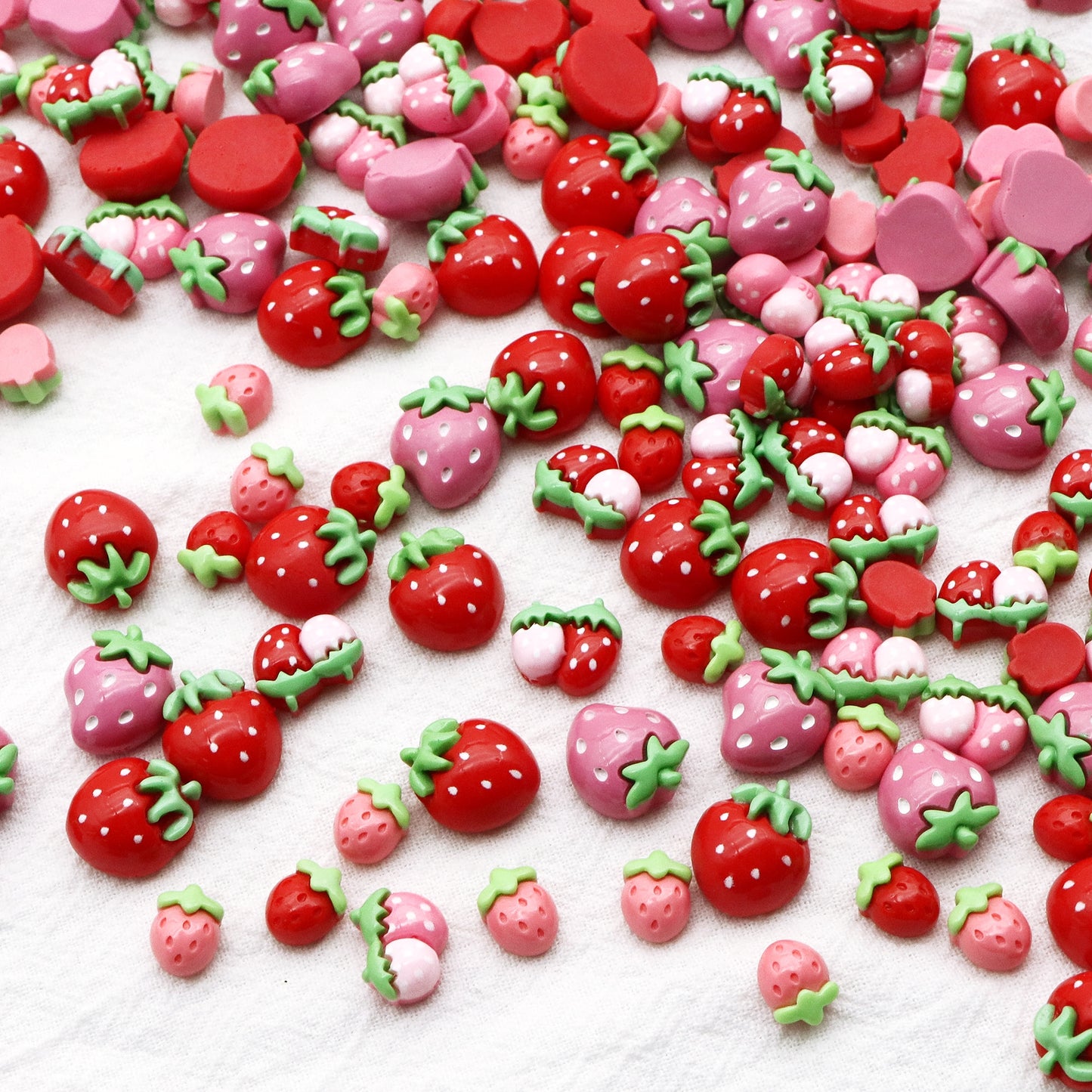 10Pcs Miniature Resin Fruits Strawberry Shaped Acrylic Charms Beads,Random Pattern 3D Flatback Resin Cabochons for DIY Jewelry Making, Earrings, Bracelets, Keychains & Crafts - Perfect for Phone Cases, Water Bottles & Hair Accessories