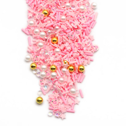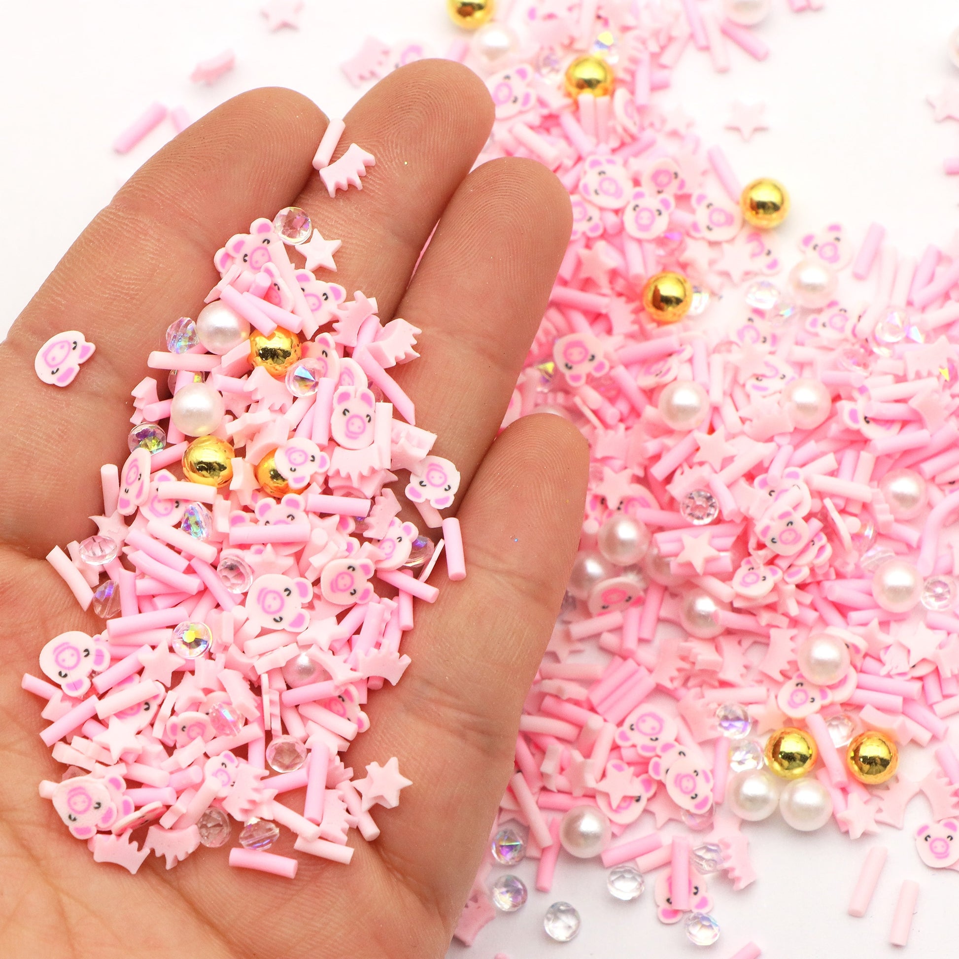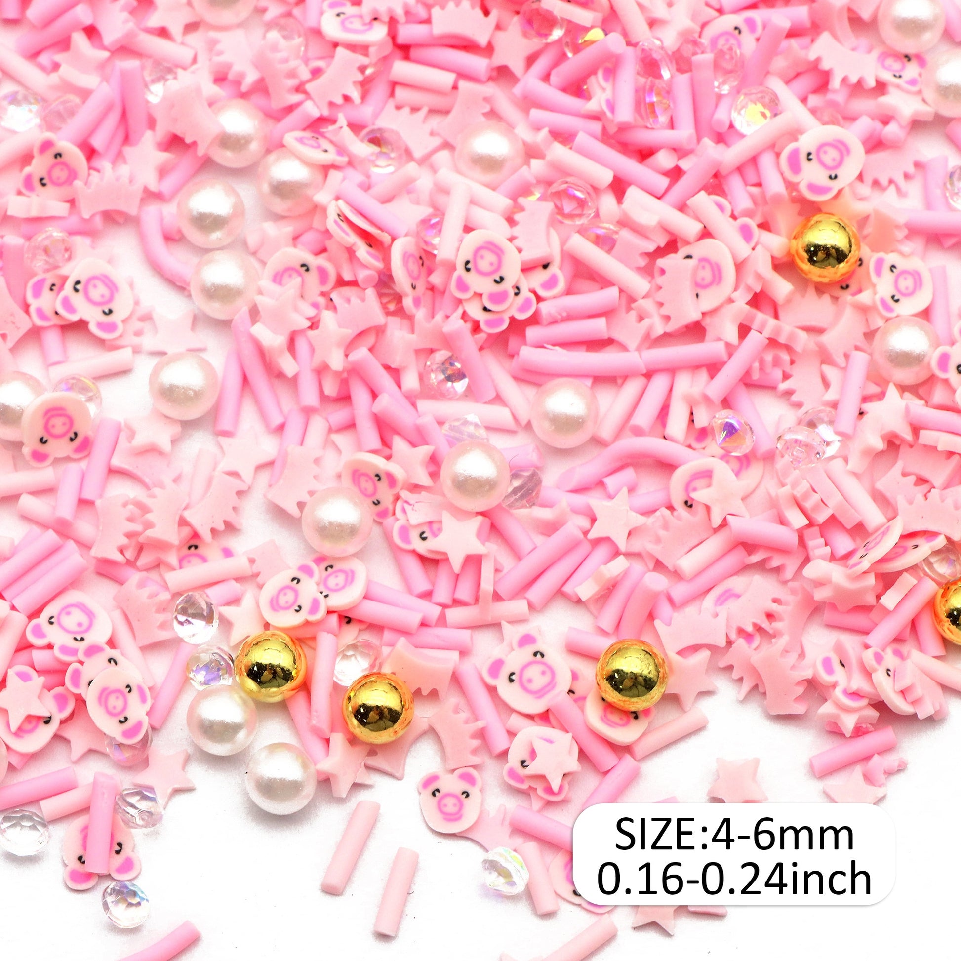 10g Pack Pink Color Pig Animal With Beads Bread Crumbs Crown Soft Polymer Clay Charms, Happy Holiday Nail Decorations for Manicure Design, Professional Nail Supplies Accessories, Filler, Package