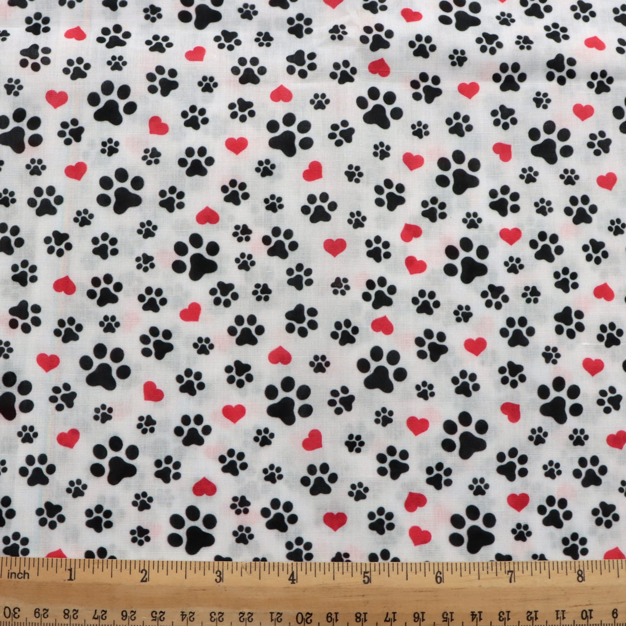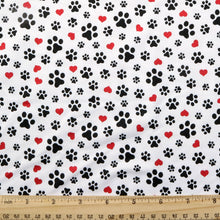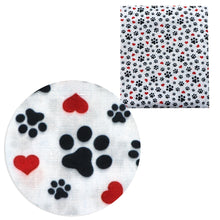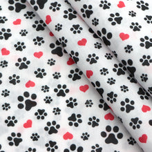 footprint paw heart love valentines day printed fabric