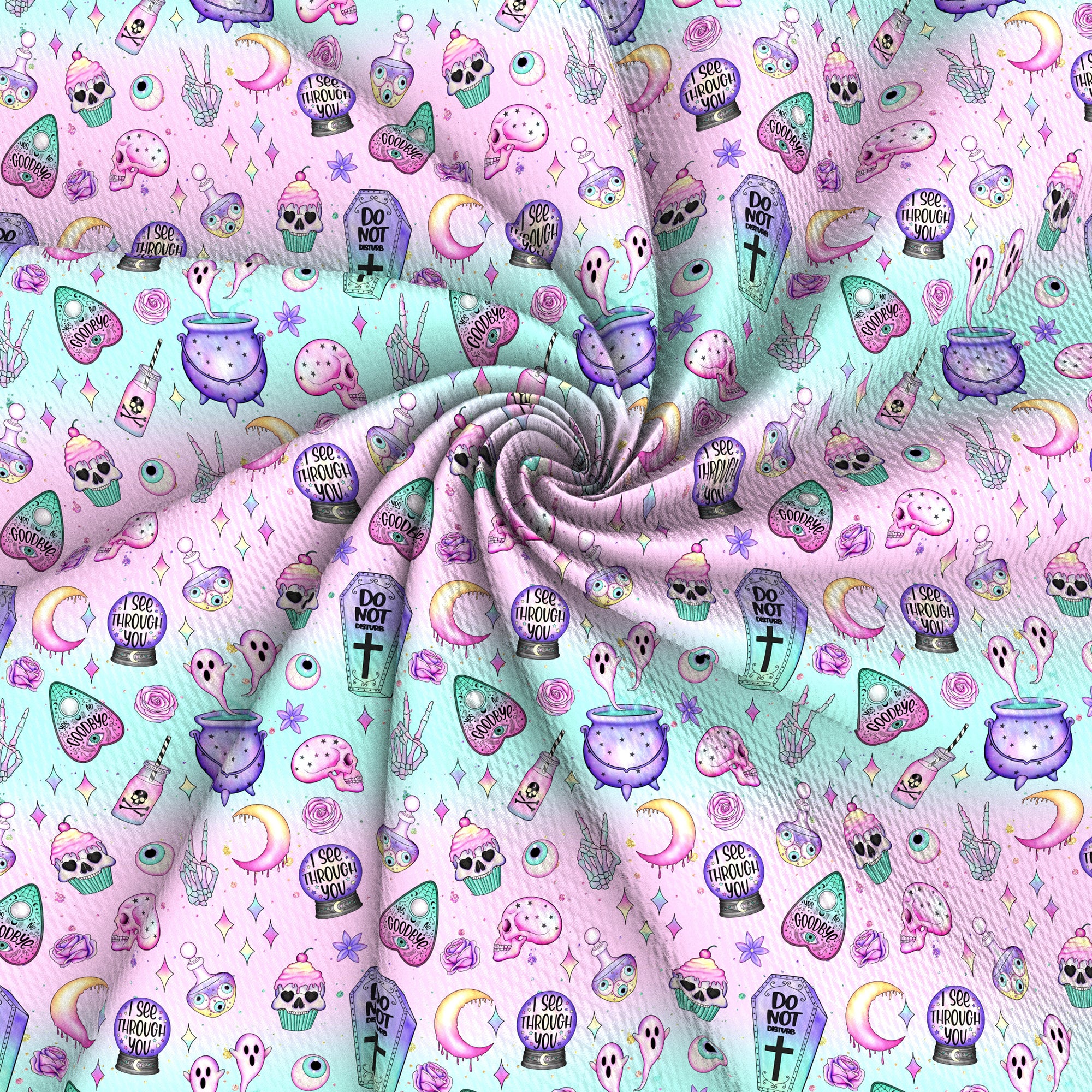 halloween skull ghost skeleton bones moon tie dye printed fabric