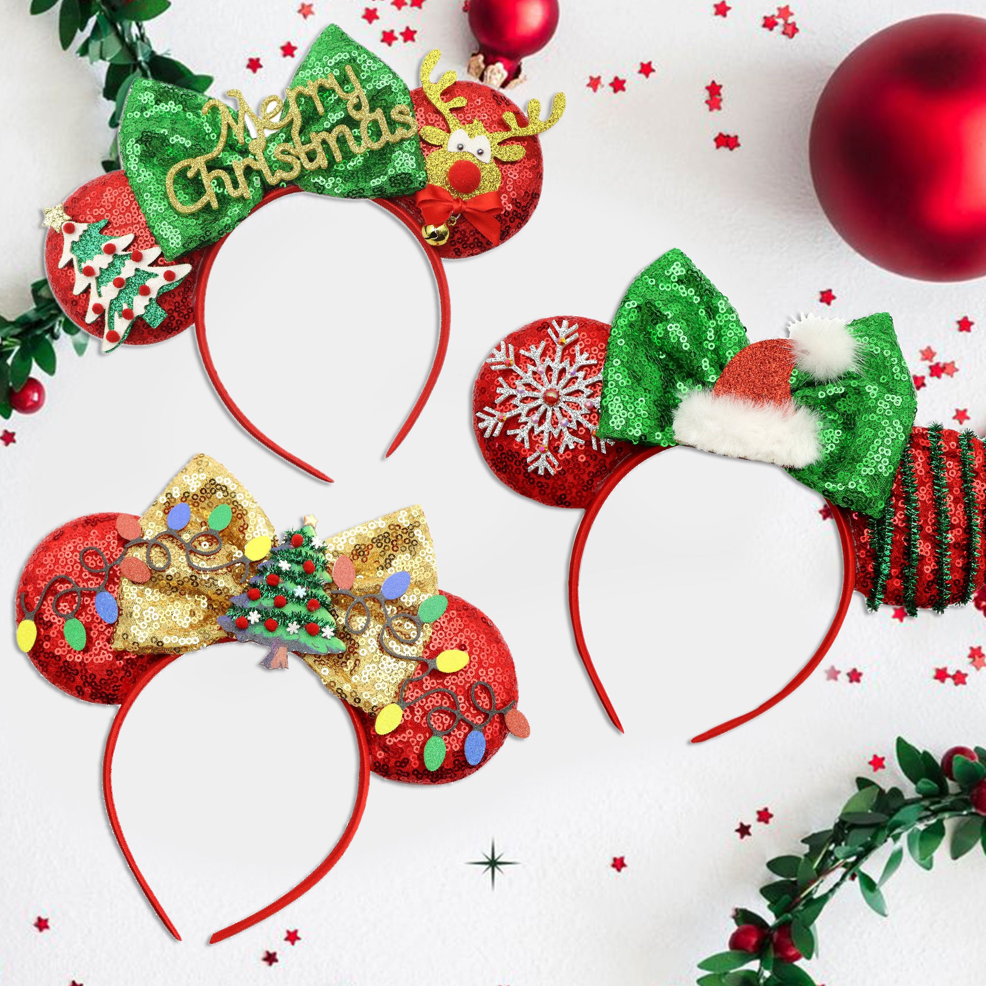 Adorable Christmas Festive Ears Sequined Headband with Bows--With box packaging