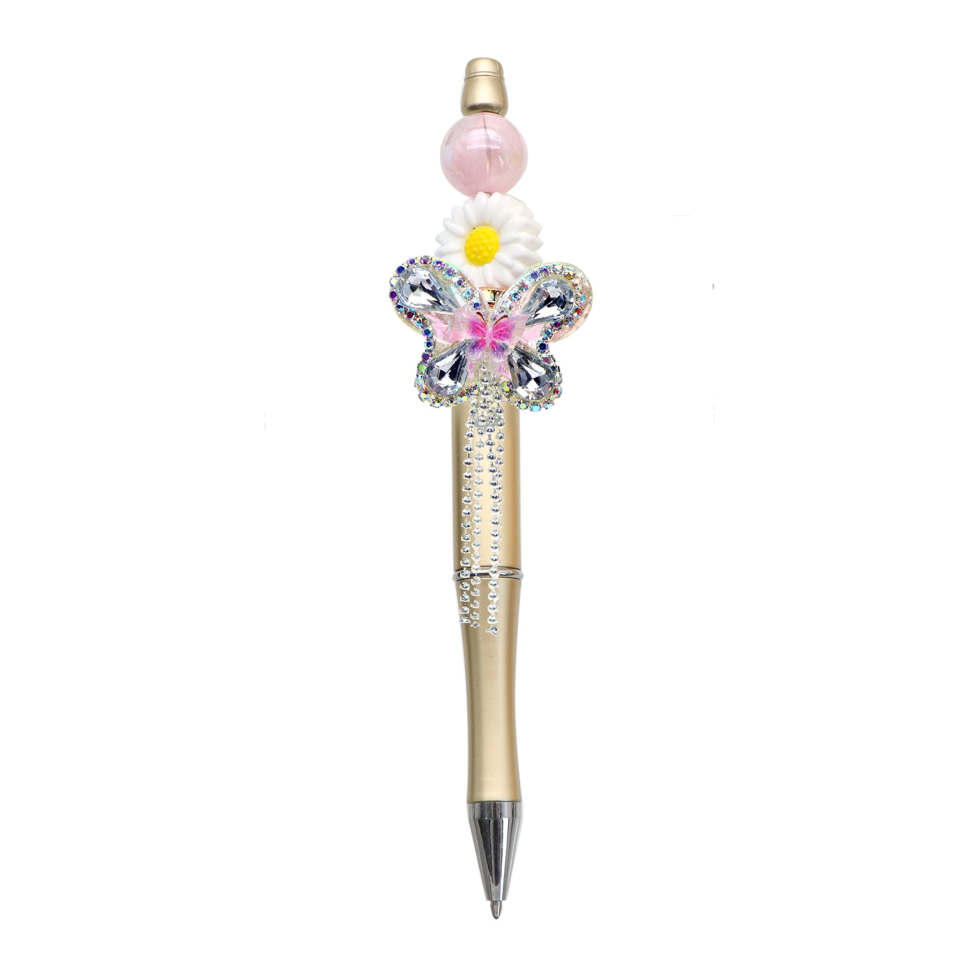 1Pc Luxury Butterfly Rhinestone Faux Crystal Beads with Tassel Loose Spacer Beads with Hole Jewelry Making DIY Bracelet Necklace Chain Earrings Pen Charm Bangle Decors Craft Supplies