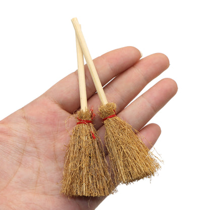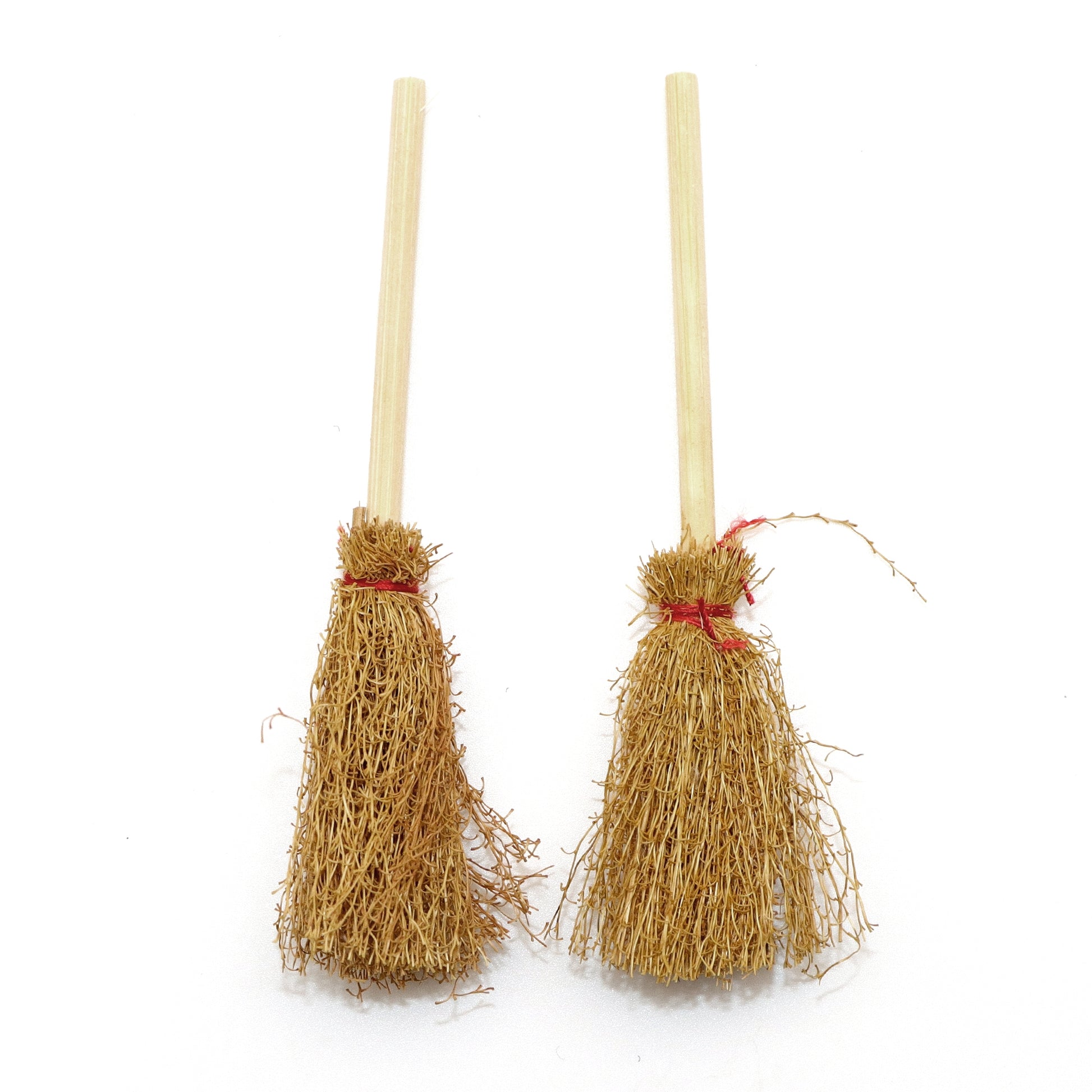 1Pc Durable Bamboo Miniature Artificial Straw Brooms with Red Ropes, Halloween & Easter Party Decor, Witches Accessory for Costume Cosplay, No Feather, Festive Home & Kitchen Decor