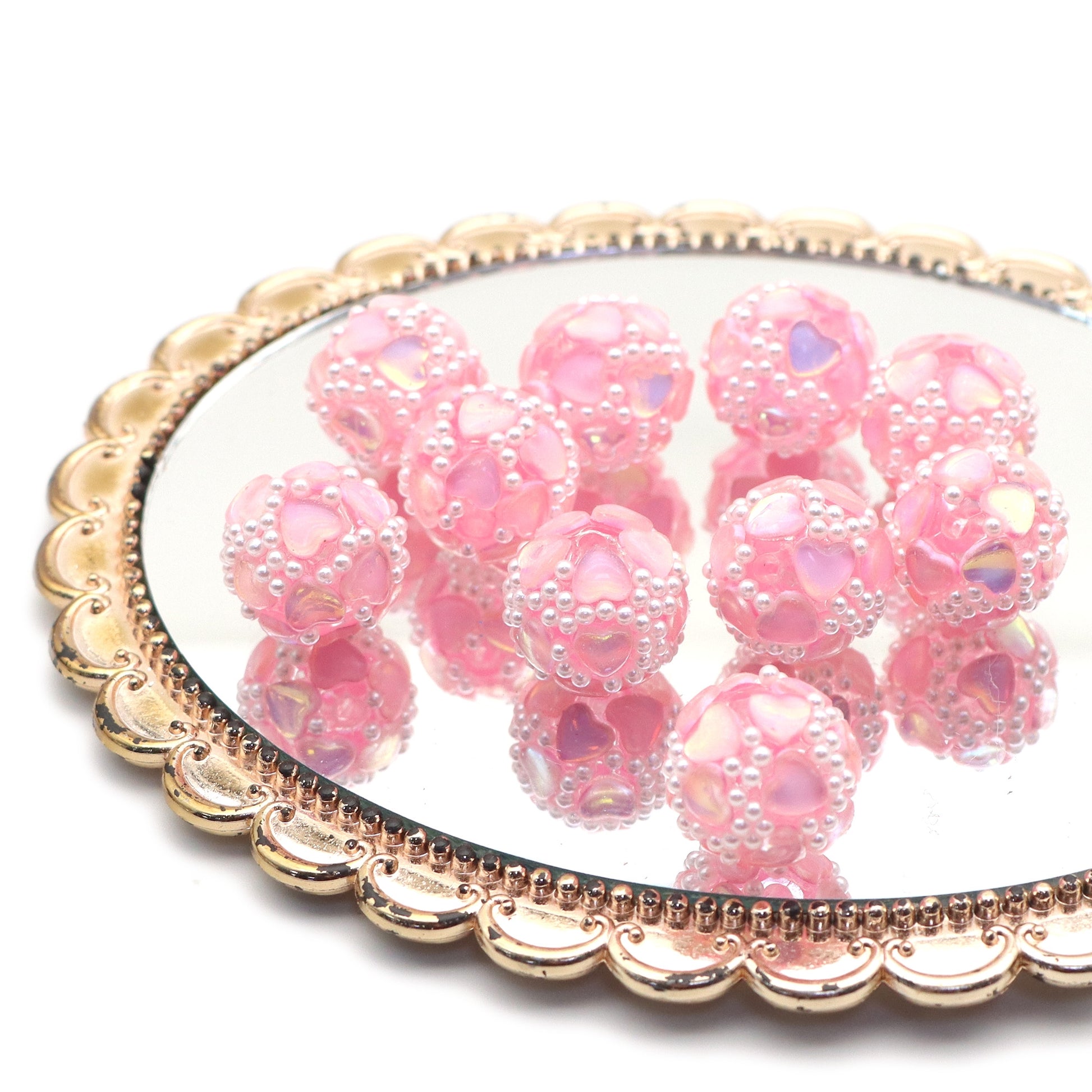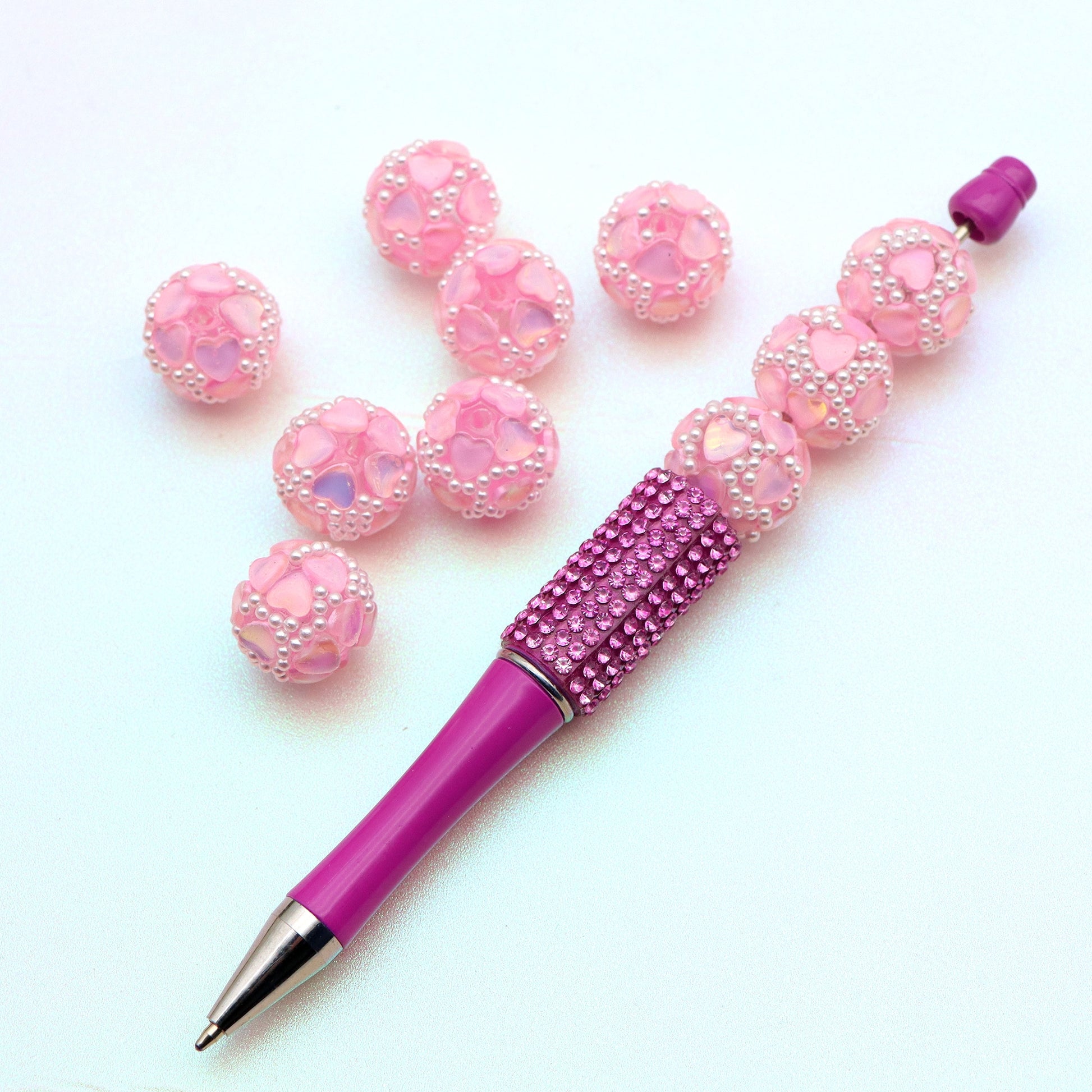 1Pc Festive Series Faux Rhinestone Pearl Acrylic Beads Heart Shaped Loose Spacer Beads Charms with Hole Ideal for DIY Jewelry Making DIY Bracelet Necklace Chain Earrings Charm Pen Bangle Decors Festive Craft Supplies