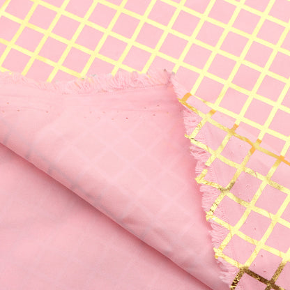 1pc Golden Plaid Print 100% Polyester Pink Fabric, 58.26x19.68 inch Precut Fabric, Perfect for Party Decorations, and Craft Projects, Hair Ties, DIY Quilting & Sewing, Patchwork, Backdrop Fabric | Plaid Pattern