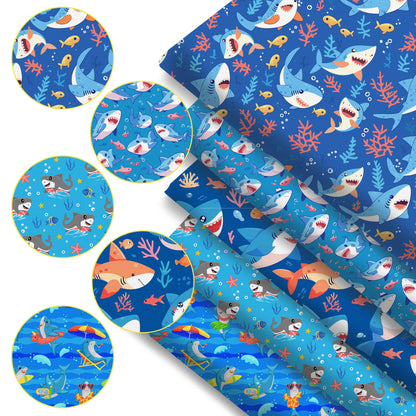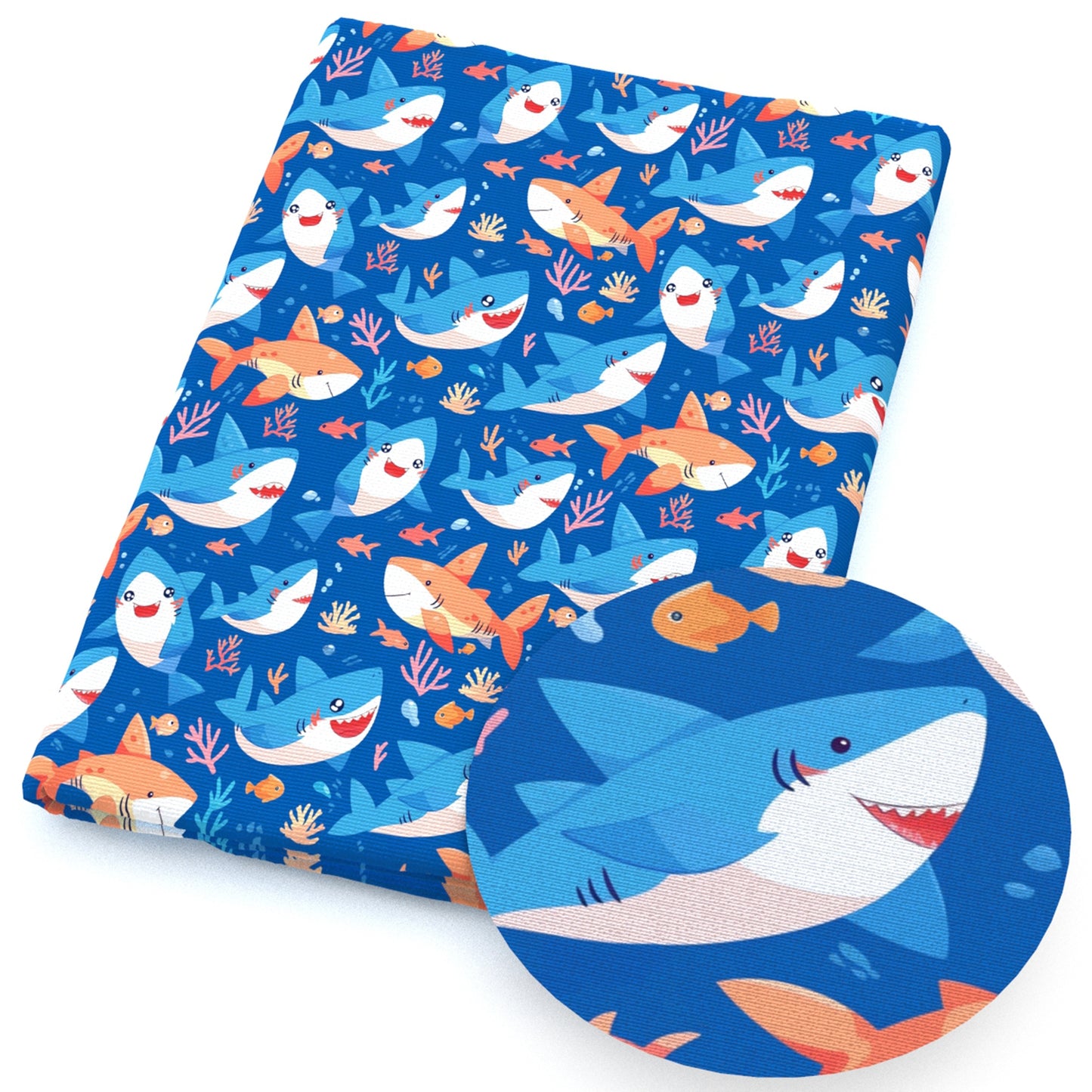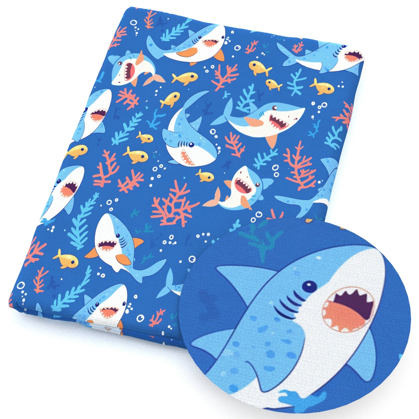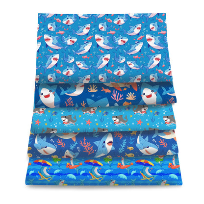 1pc shark ocean Series Pattern Quilting Fabric-17.7x19.68inch(45x50cm) Polyester Craft Fabrics DIY Handmade Projects Doll Clothes Fabric Precut For Patchwork Craft(108gsm)
