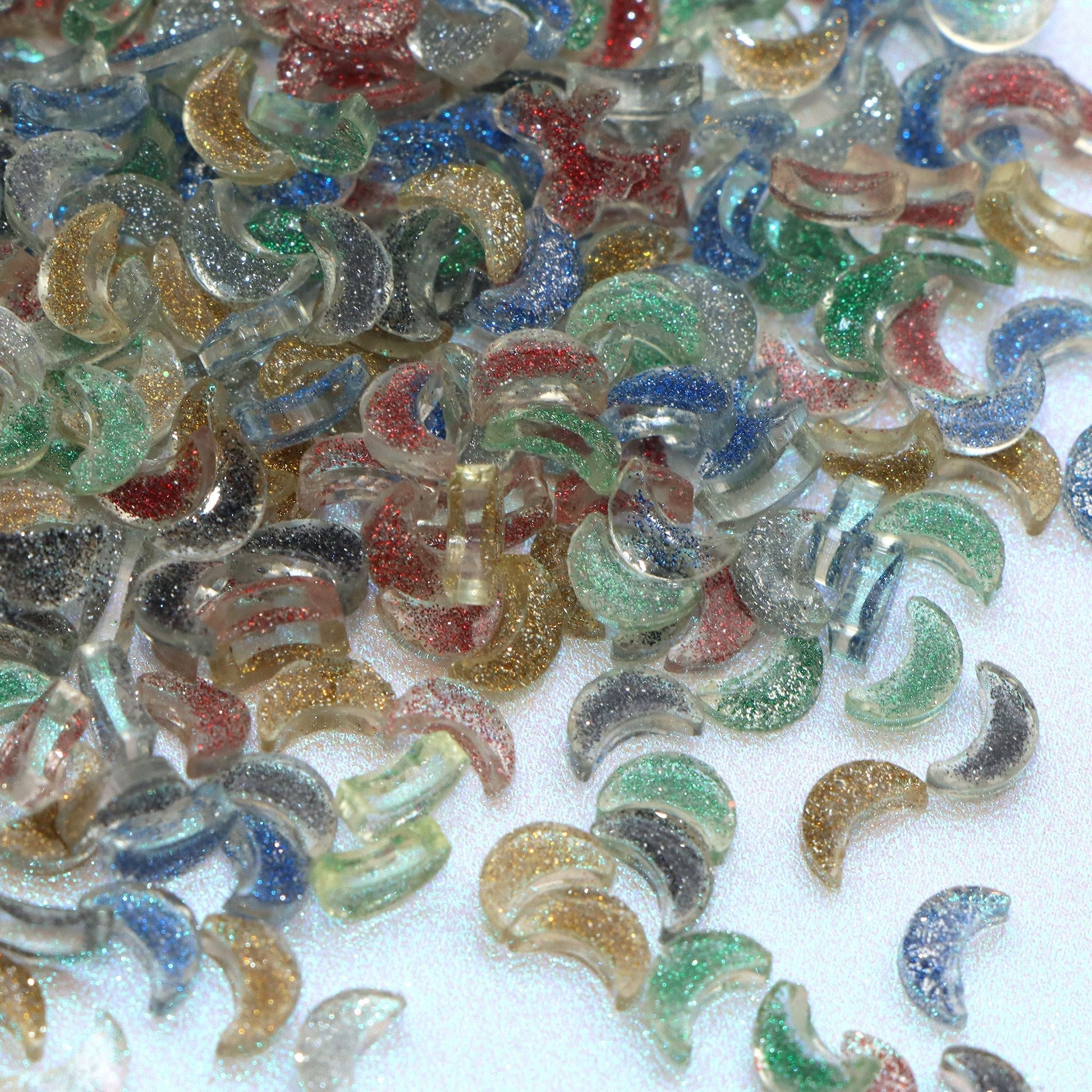20Pcs Glitter Moon Resin Beads for Jewelry Making DIY Bracelet Necklace Chain Earrings Charm Decors For Nail Art Design Crafts Jewelry Accessories