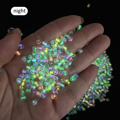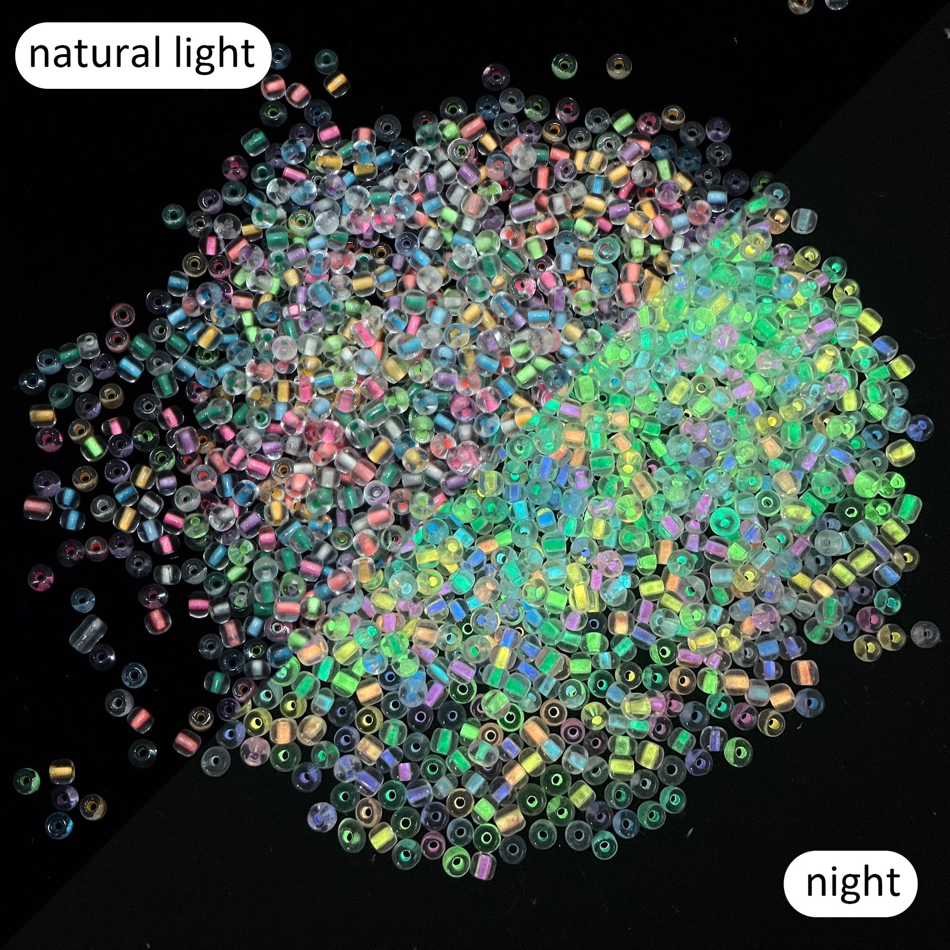 30g/1.06oz 4mm Glass Miyuki Seed Beads Mixed Colors Glow in the Dark Loose Spacer Beads with Hole for Jewelry Making DIY Bracelet Necklace Chain Earrings Charm Bangle Decors Craft Accessories