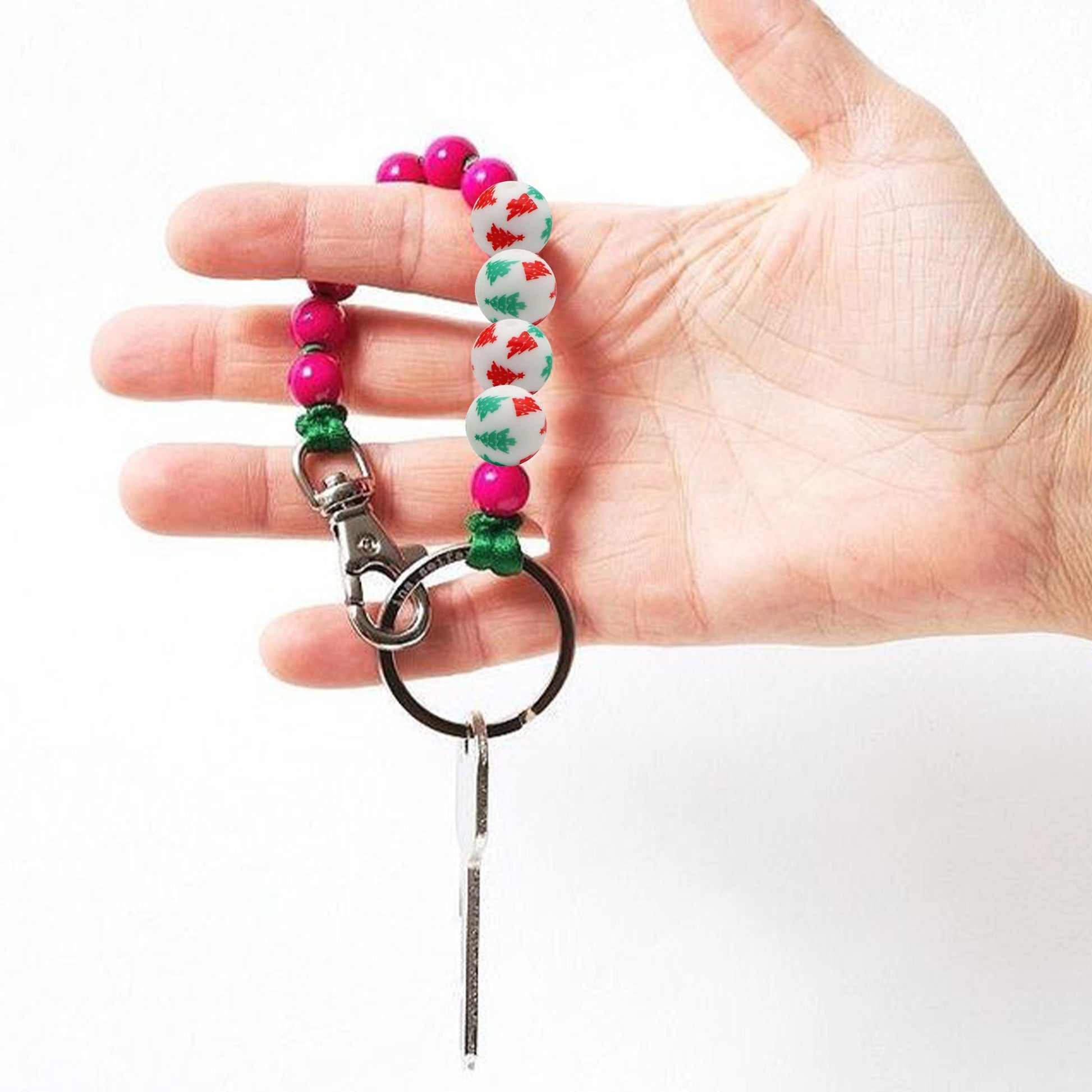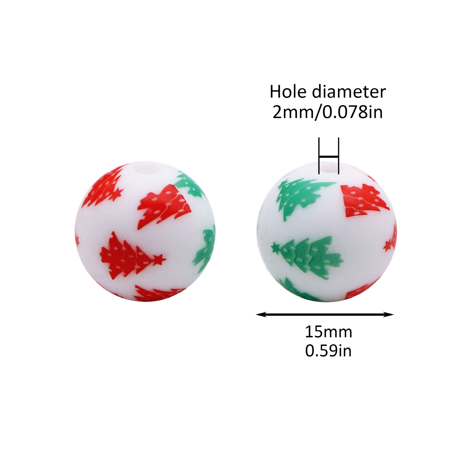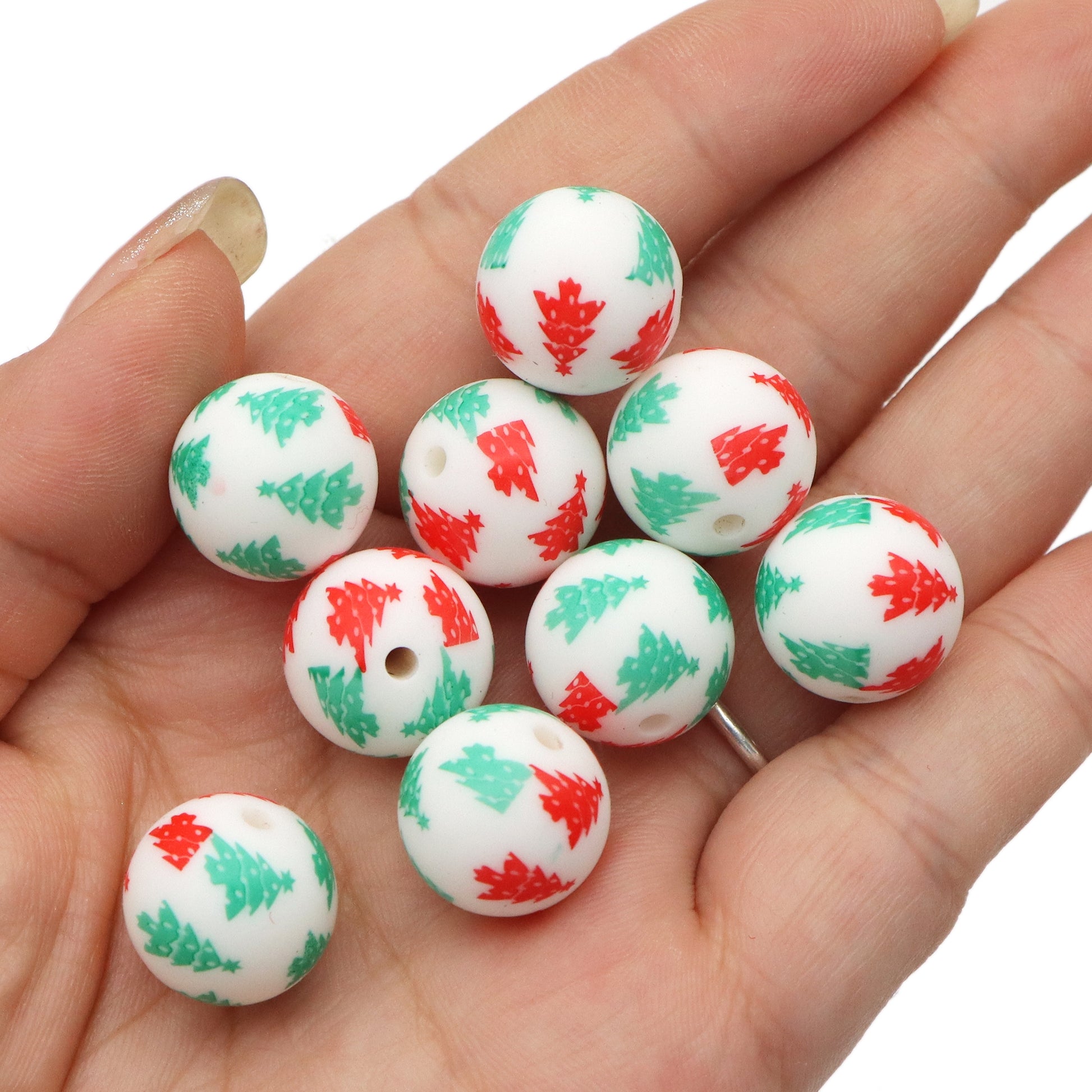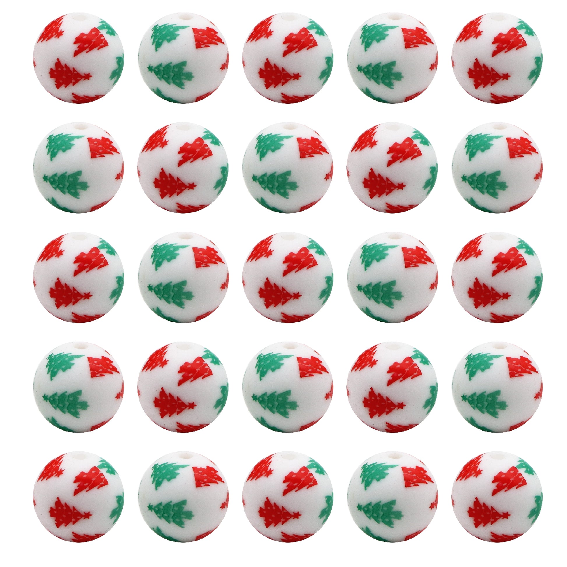 Christmas Tree Silicone Beads for Jewelry Making - Pearlescent Loose Round Beads with Hole, DIY Craft Supplies for Bracelets, Keychains, Handmade Fashion Accessories - 5PCS Assortment