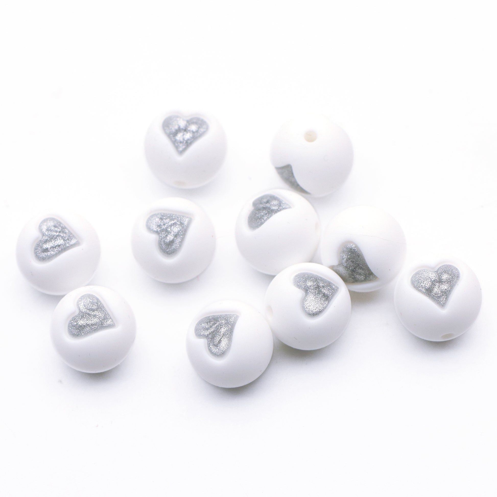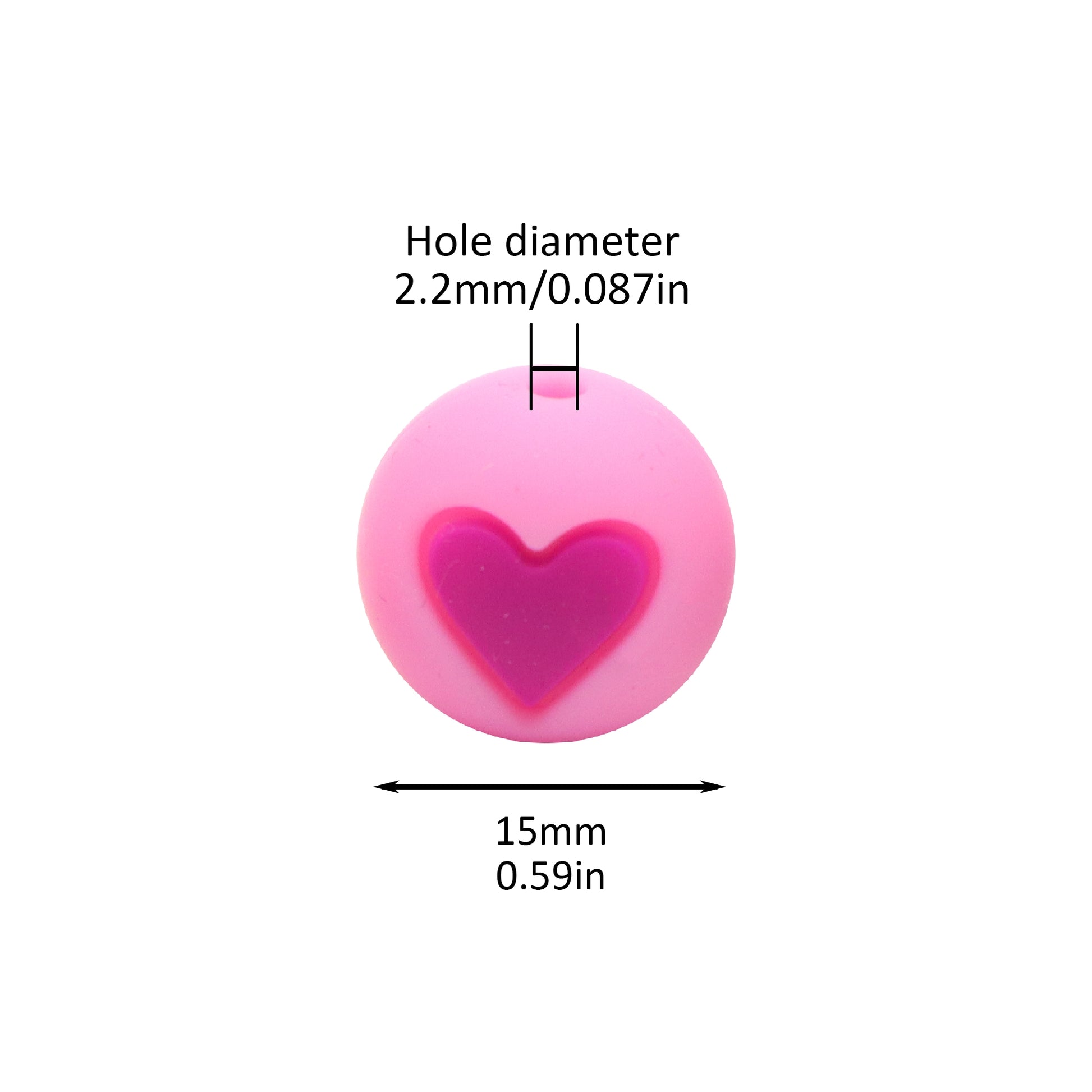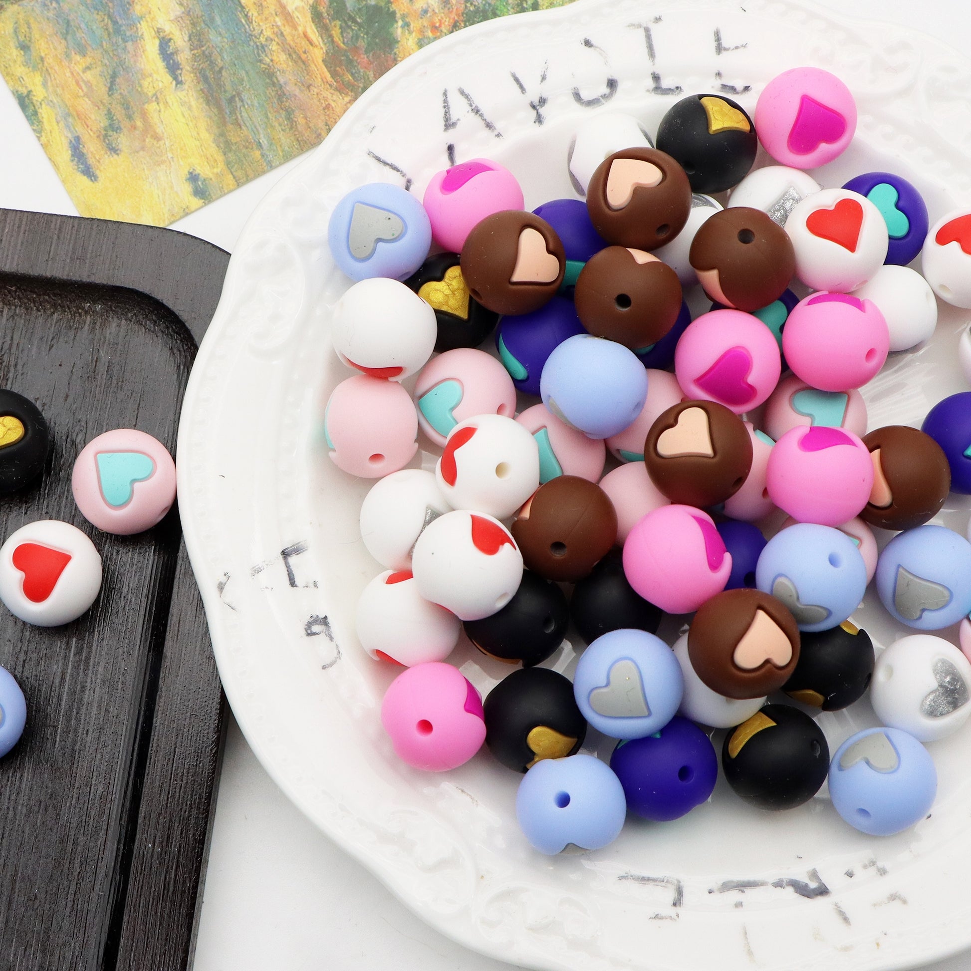 5Pcs 15mm Festive Silicone Beads Love Heart Pattern Round Shaped Focal Beads Loose Spacer Beads for DIY Jewelry Making Accessories DIY Bracelet Necklace Chain Earrings Charm Bangle Decors Craft Pen Supplies