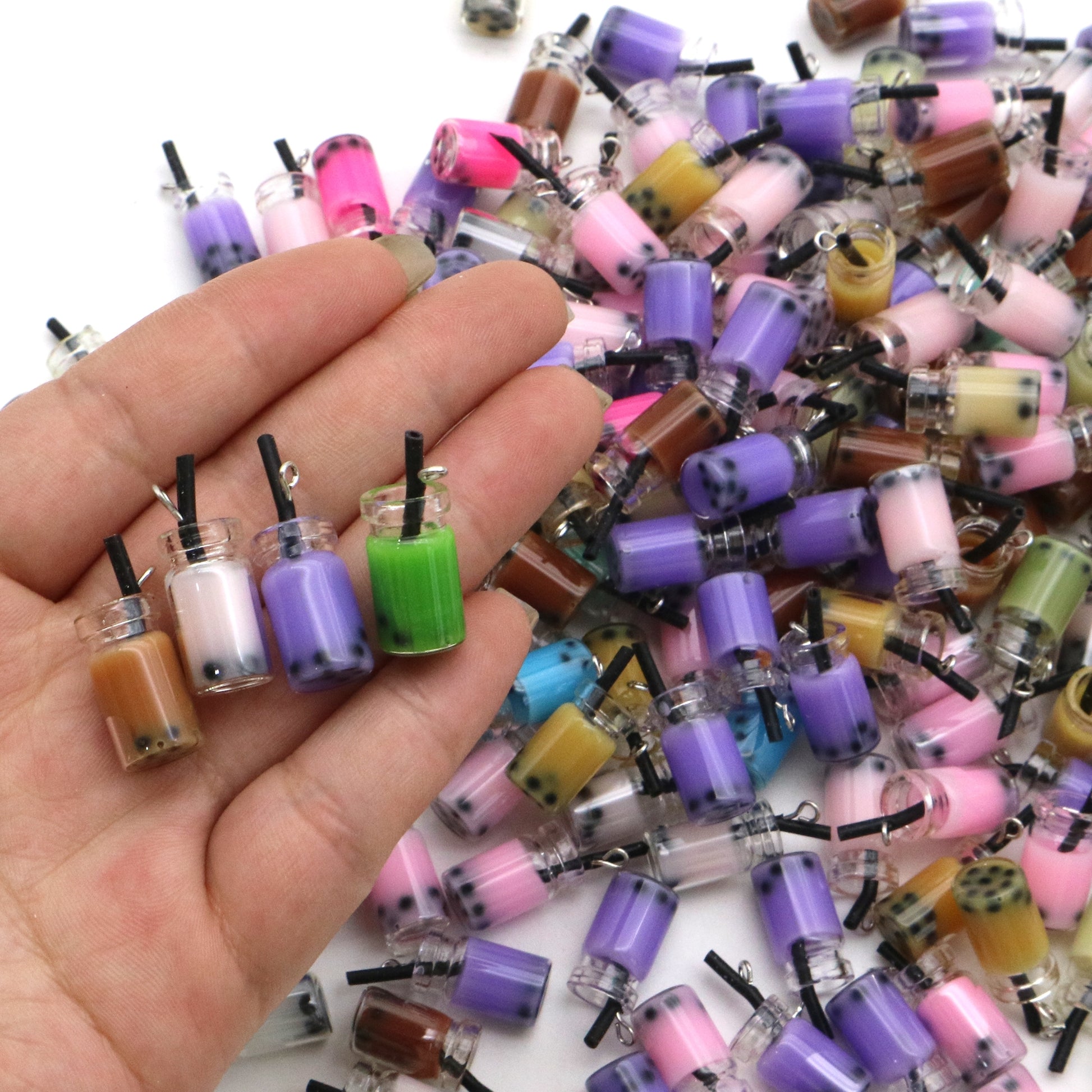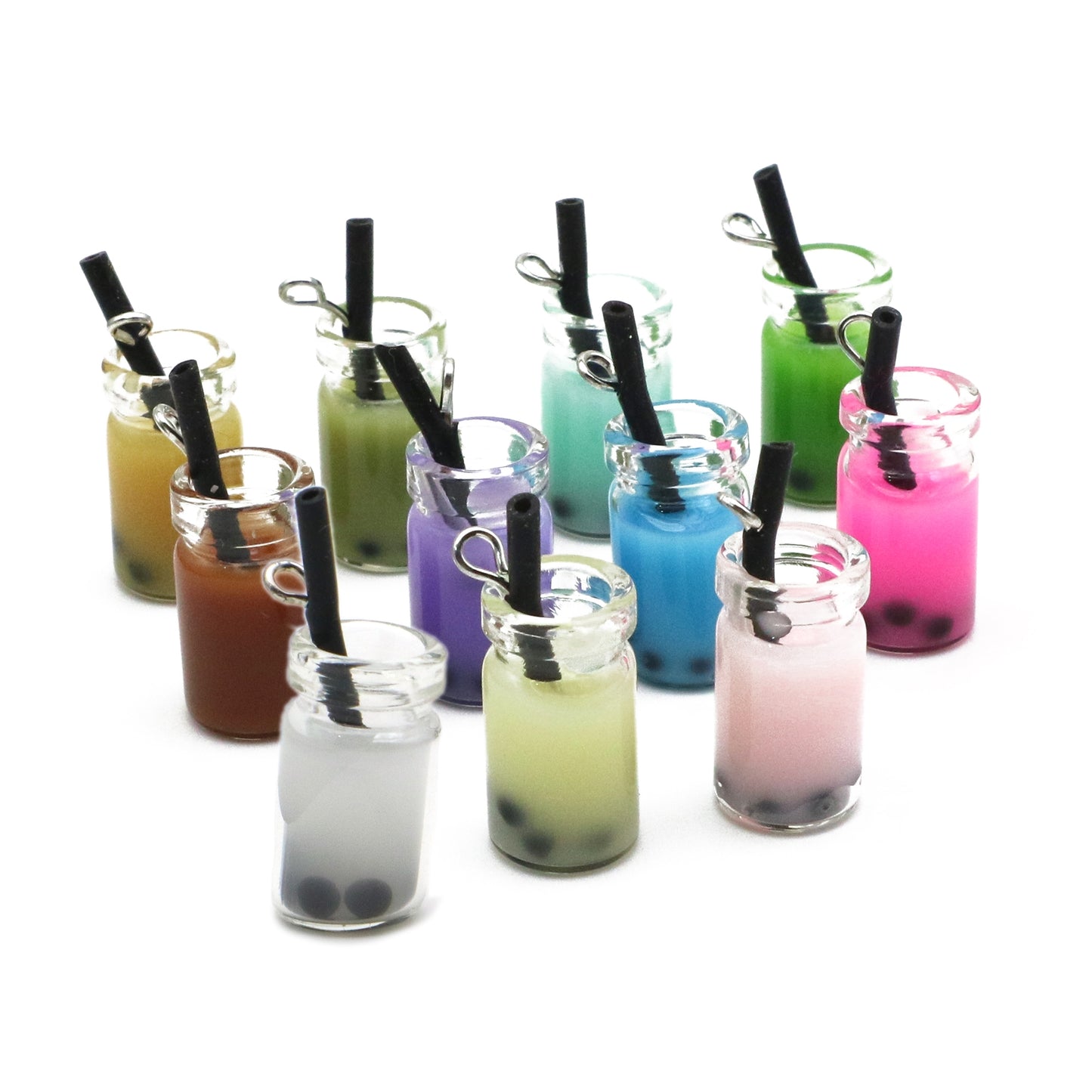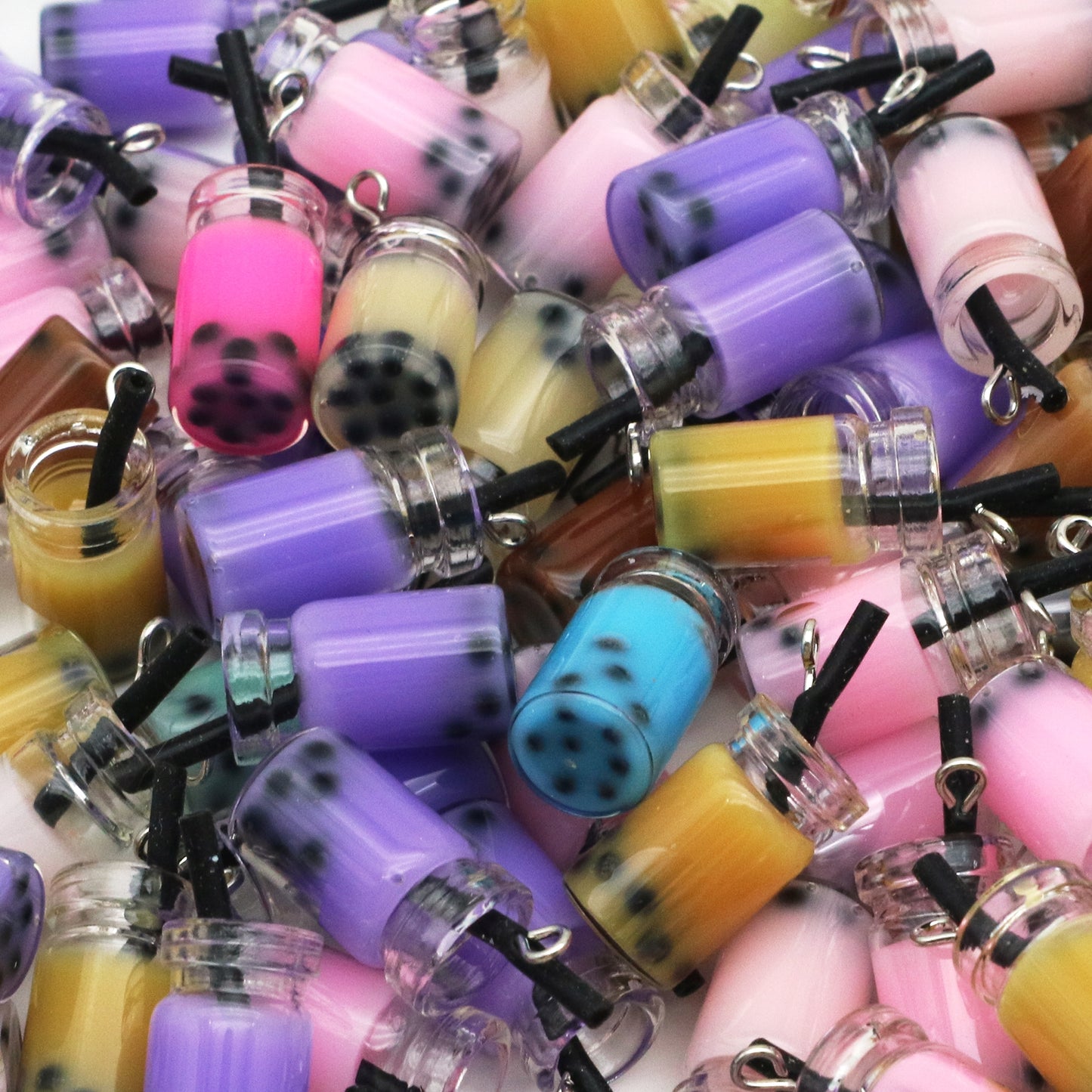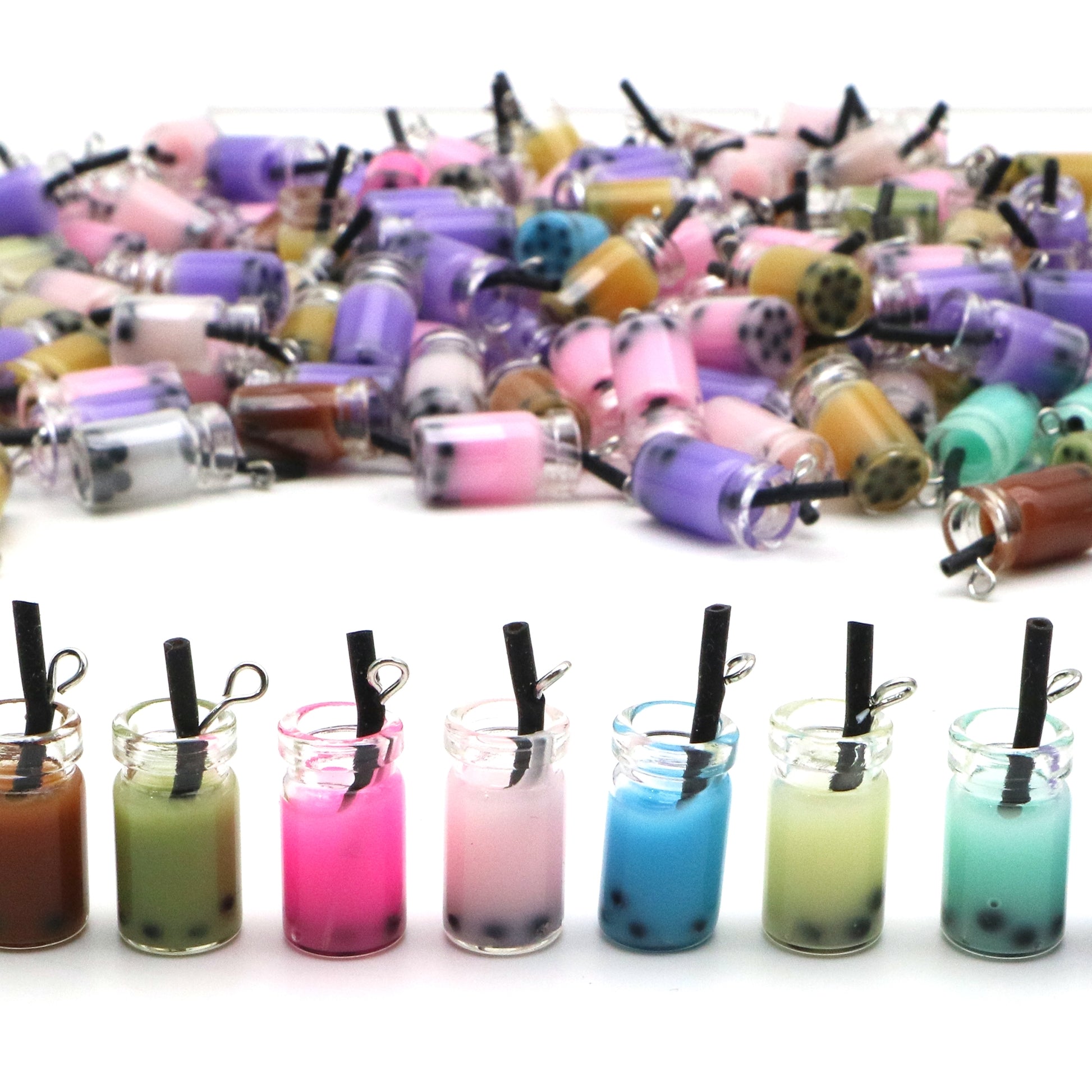 5Pcs/Pack Exquisite Milk Tea Cup Resin Charms Pendant-Mixed Colors-Perfect for DIY Jewelry Making Necklace Bracelets Earrings Keychain Findings Crafting, and Accessories